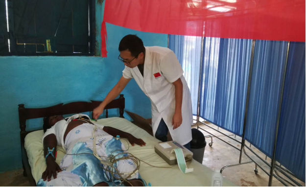 医疗队医生做心电图检查