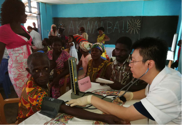 社会要进步,教育投资要跟上,但更要由健康的体魄打头阵。华联总会还要请到中国驻加纳第七批医疗队全体成员前来为全校师生及附近居民开展免费义诊活动。此次义诊的项目包括:外科、骨科、神经科、心血管科、妇科、眼科、中医科等几大主要科目检查。尽管天气很热,但师生们热情很高涨,看到这些中国医生免费为大家做诊断,孩子们更是不知道应该如何表达自己心中的喜悦。医生们更是耐心细心地为每位师生解说身体目前状况及注意事项。