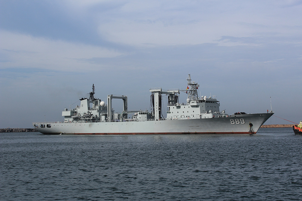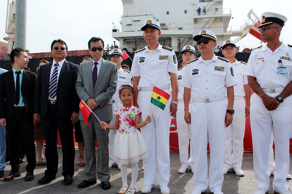 6月4日,中国海军第二十八批护航编队盐城舰停靠在加纳特马港