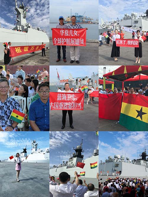 当天,前来参加欢迎仪式人员被分成不同小组依次登舰参观。其中华联总会会长唐宏表示,登上祖国的军舰,一种自豪感油然而生,此次海军舰队对加纳进行访问,是中国越来越强大地无言的印证,国强则侨安,祖国的强大是我们这些长年奋斗在国外的游子们最坚实的动力,因为每一位在这里挥洒热血的侨胞们深深地明白祖国时刻关注着我们。