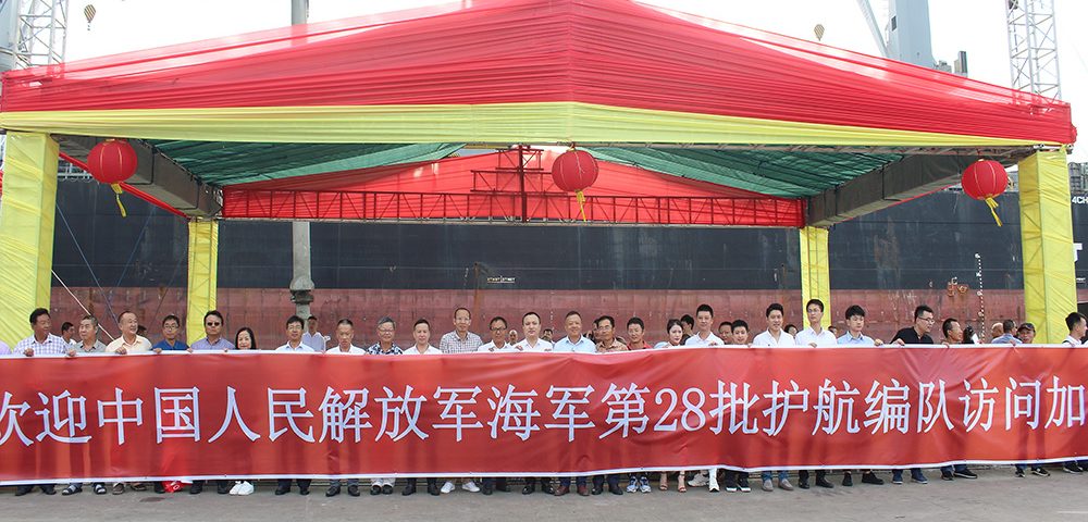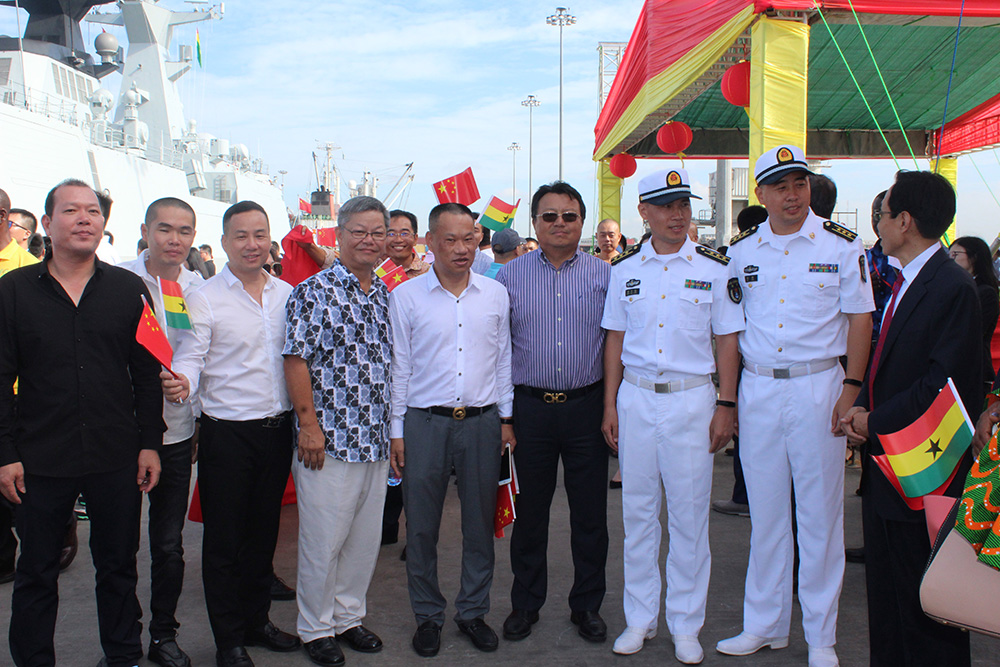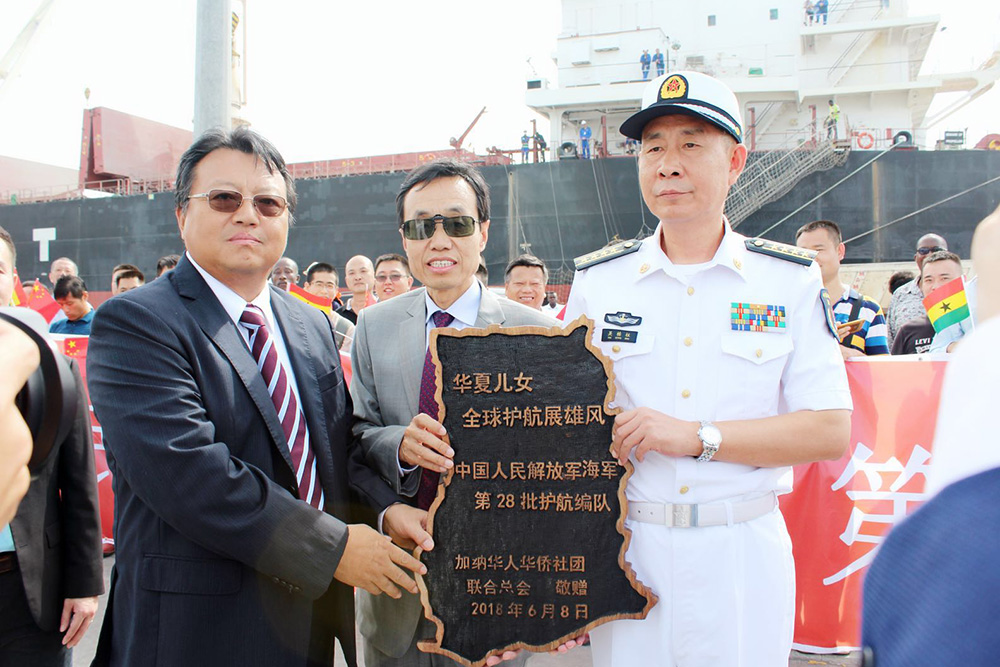 4日上午,由导弹护卫舰盐城舰、潍坊舰和综合补给舰太湖舰组成的中国海军第二十八批护航编队抵达加纳特马港,开始对加纳进行为期4天的友好访问,这是中国海军舰艇编队首次访问加纳。 中国驻加纳大使王世廷、使馆代表、在加侨团组织代表、加参谋总长奥贝德·阿夸、外交部副部长查尔斯·奥维雷多等军政官员表等出席了此次欢迎仪式。其中,加纳华侨华人社团联合总会&加纳中华工商总会会长唐宏、秘书长沈汉明、副秘书长晏立权及众多总会成员出席了此次欢迎仪式。并精心组织安排了热闹的舞狮活动,以表示对护航编队的热烈欢迎。