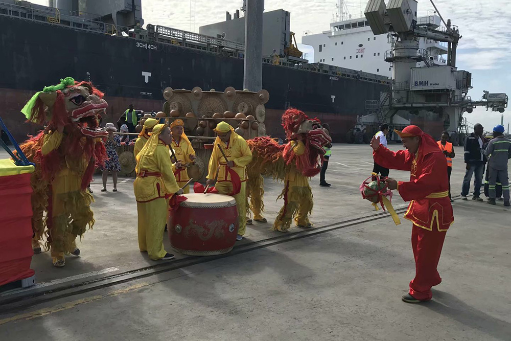 华联总会为迎接护航编队精心准备的舞狮及锣鼓表演
