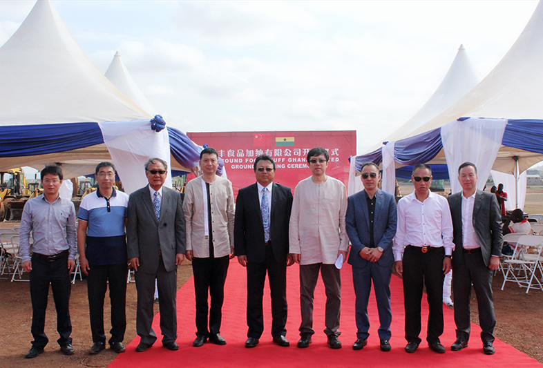 8月9日,加纳利丰食品有限公司番茄酱项目奠基典礼于特马Afynia隆重举行。加纳贸工部副部长罗伯特·阿豪卡·林德赛,特马宁高市政局局长炯纳森·杜库先生,大阿克拉地区市长尼阿玛·阿实特先生,“一区一厂”项目总负责人盖福娣女士,天津食品集团张军副总经理,天津食品集团利民调料有限公司万守鹏总经理,加纳华侨华人社团联会总会唐宏会长、副会长及秘书长等,加纳福建商会许宁佺会长,格林豪斯国际置业开发有限公司董事长郑祥明及总经理高建等百余人出席了此次活动。