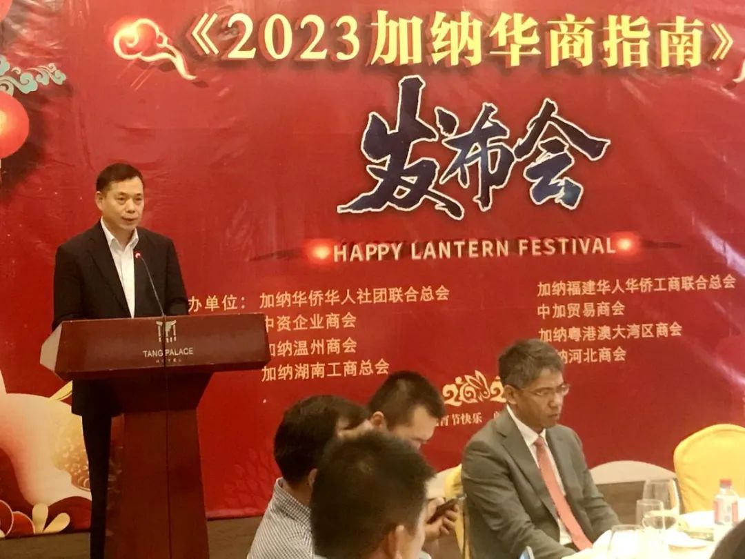 卢大使首先祝福与会嘉宾元宵佳节快乐,祝福大家在新的一年身体健康、事业进步、阖家幸福、万事顺遂!卢大使热烈祝贺2023版《加纳华商指南》成功付梓,高度赞赏在加各大侨团商会为此付出的辛勤努力,强调新版《加纳华商指南》内容丰富实用,全面汇集了在加纳投资、经商、工作、生活等重要信息,对广大旅加侨胞和企业在加生存发展大有裨益,也有利于使馆开展预防性领保工作。卢大使祝愿《加纳华商指南》越办越好。卢大使指出,加纳侨团发展历史可追溯至近30年前,各大侨团商会见证并促进了中加友好关系的深入发展。当前侨团队伍更加壮大,侨胞规模大幅增长,来源地更加多样化,广大侨胞为促进加纳经济社会发展和中加友好作出重要贡献,中加友好关系也更加稳固。使馆衷心感谢加纳侨界对使馆工作的大力支持,愿继续与侨界加强沟通交流,为侨社健康发展提供力所能及的帮助。卢大使充分肯定加纳侨界团结和谐、开拓进取、守望相助的良好传统,强调海外侨胞是祖国宝贵的财富,是联系加纳和祖国的桥梁纽带,希望旅加侨胞以《加纳华商指南》再版为契机,发挥自身独特优势,努力取得更大进步,为中加友好添砖加瓦。