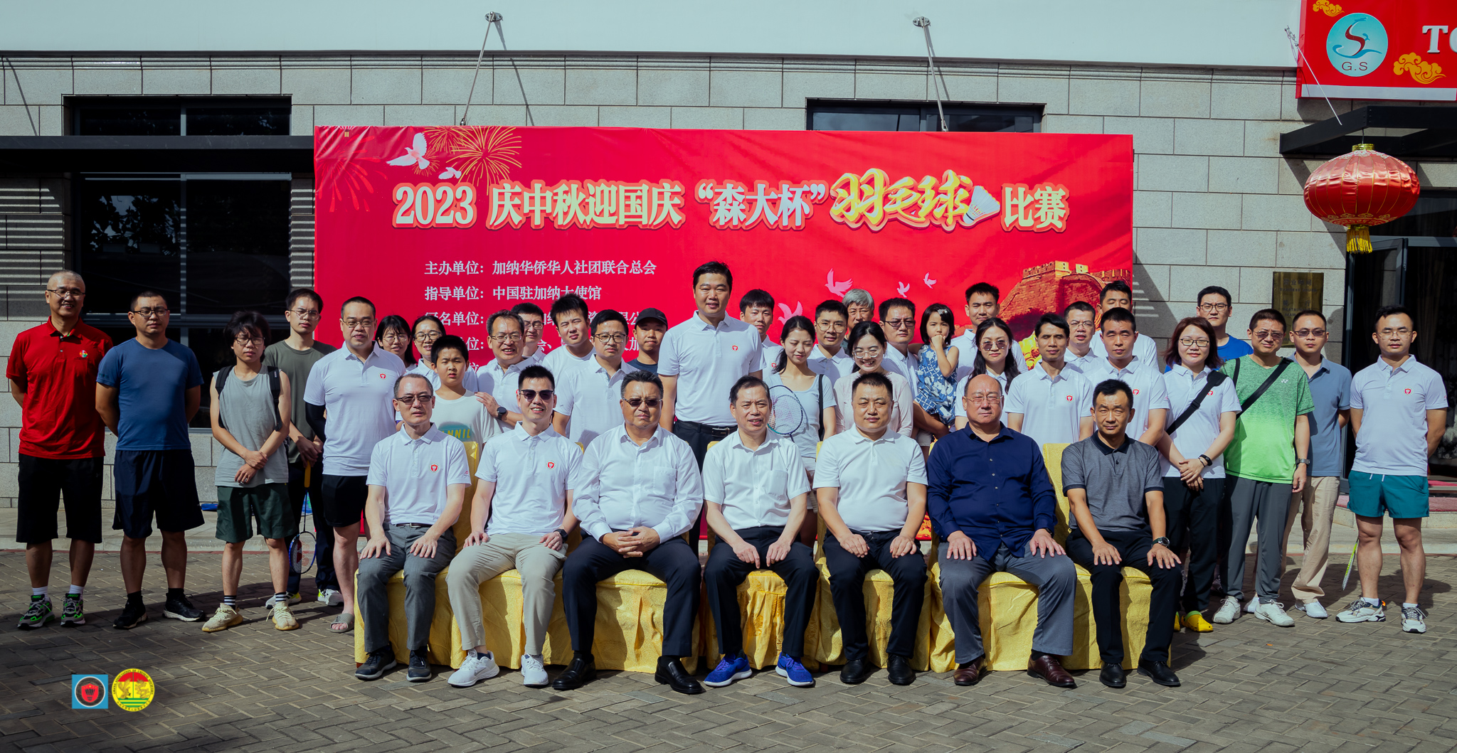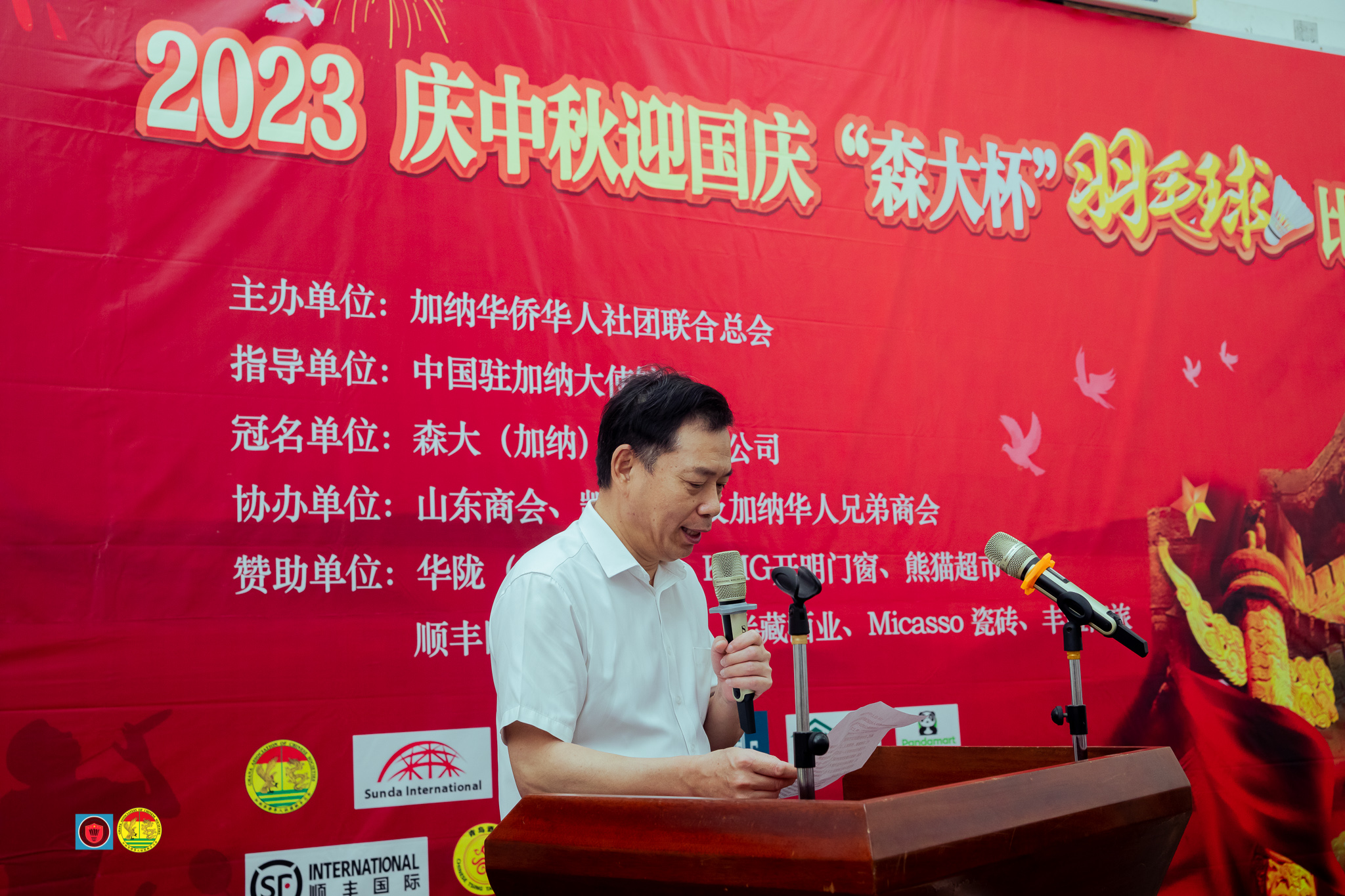 9月16日,由加纳华侨华人社团联合总会主办,加纳山东工商联合会、凯泰集团以及其他加纳华人兄弟商会联合协办的2023庆中秋迎国庆“森大杯”羽毛球联谊赛在GS Plaza Hotel隆重开幕。中国驻加纳大使卢坤阁下,加纳华侨华人社团联合总会、加纳中华工商总会会长唐宏,森大(加纳)投资有限公司总经理叶炜出席开幕式并致辞。中国驻加纳使馆参赞闻付林、领事部主任宁军、政治部主任楼淡竹、山东工商联合会会长王跃、常务副会长张东军、华陇(加纳)集团党总支书记、董事长、总经理郭啸、各羽毛球代表队及羽毛球爱好者百余人参加。