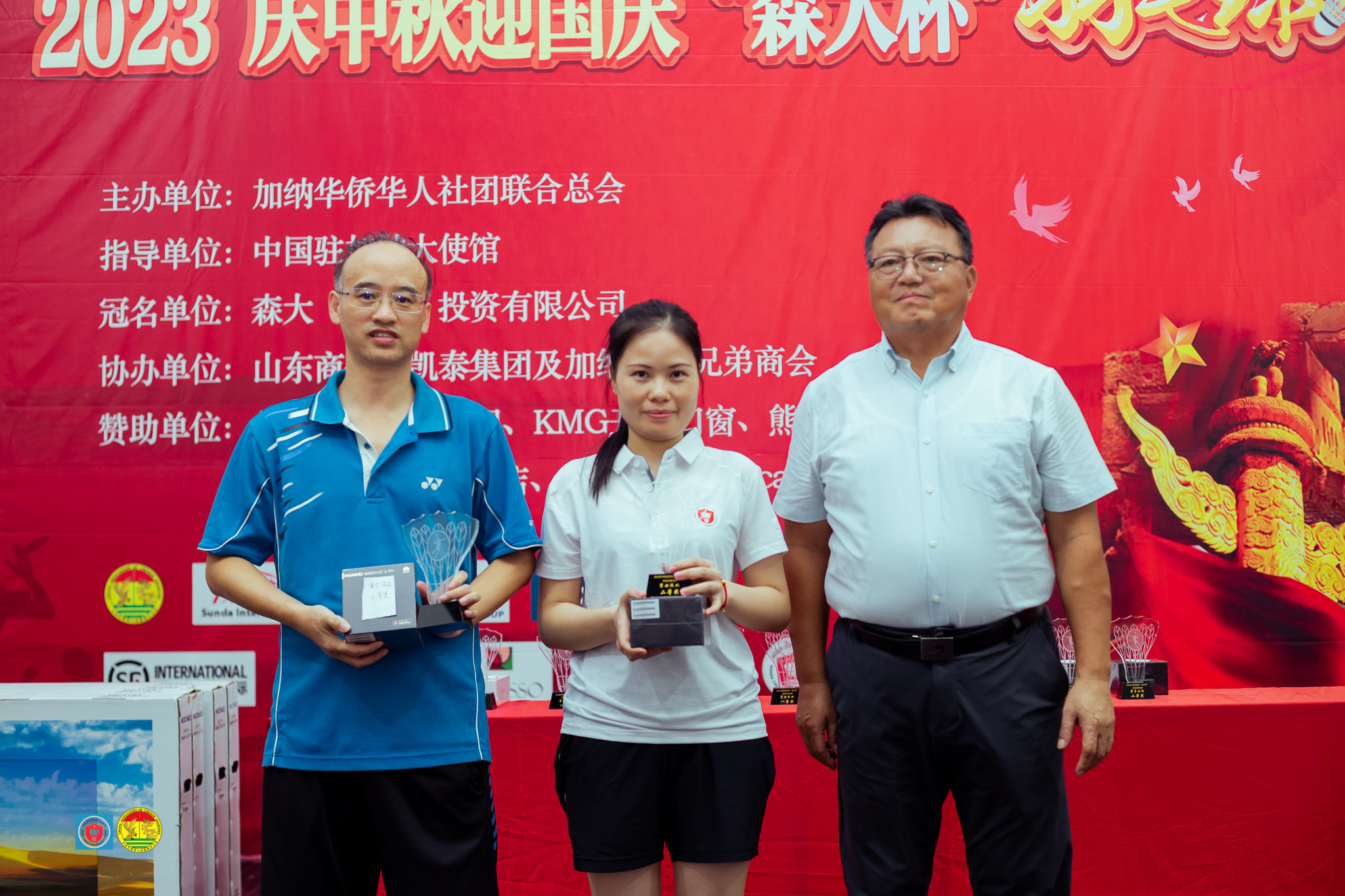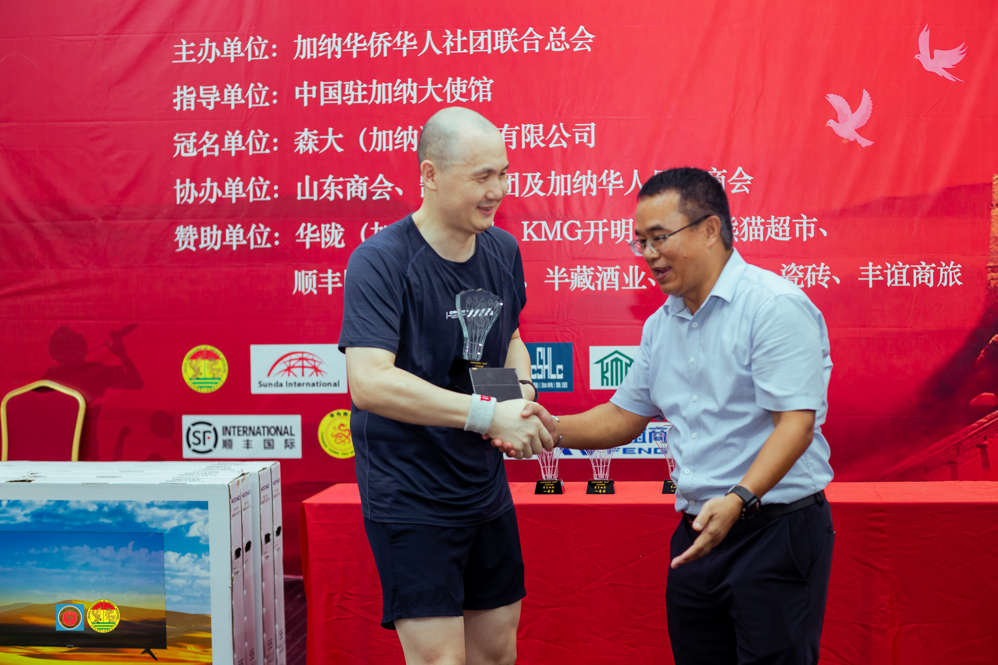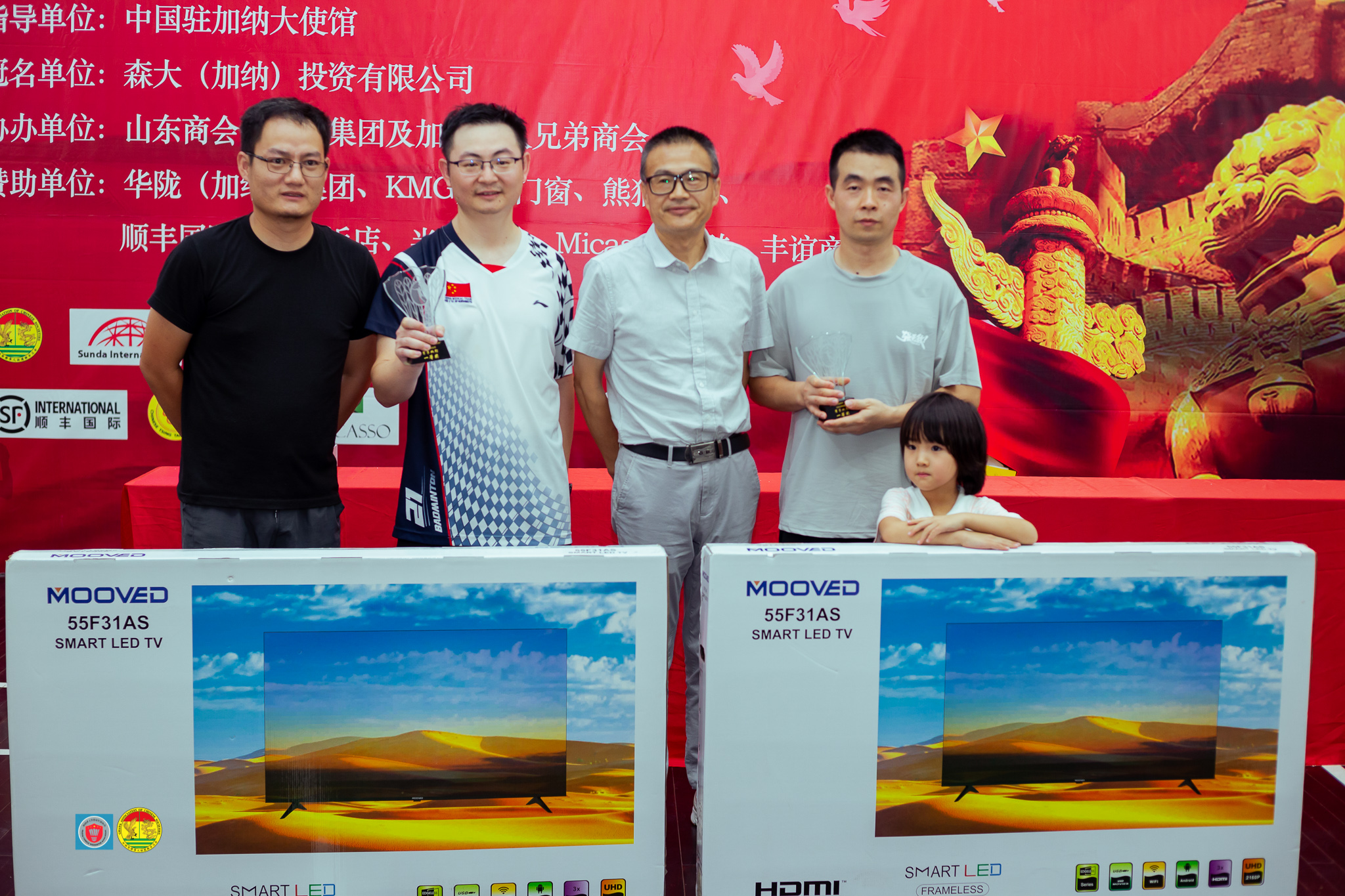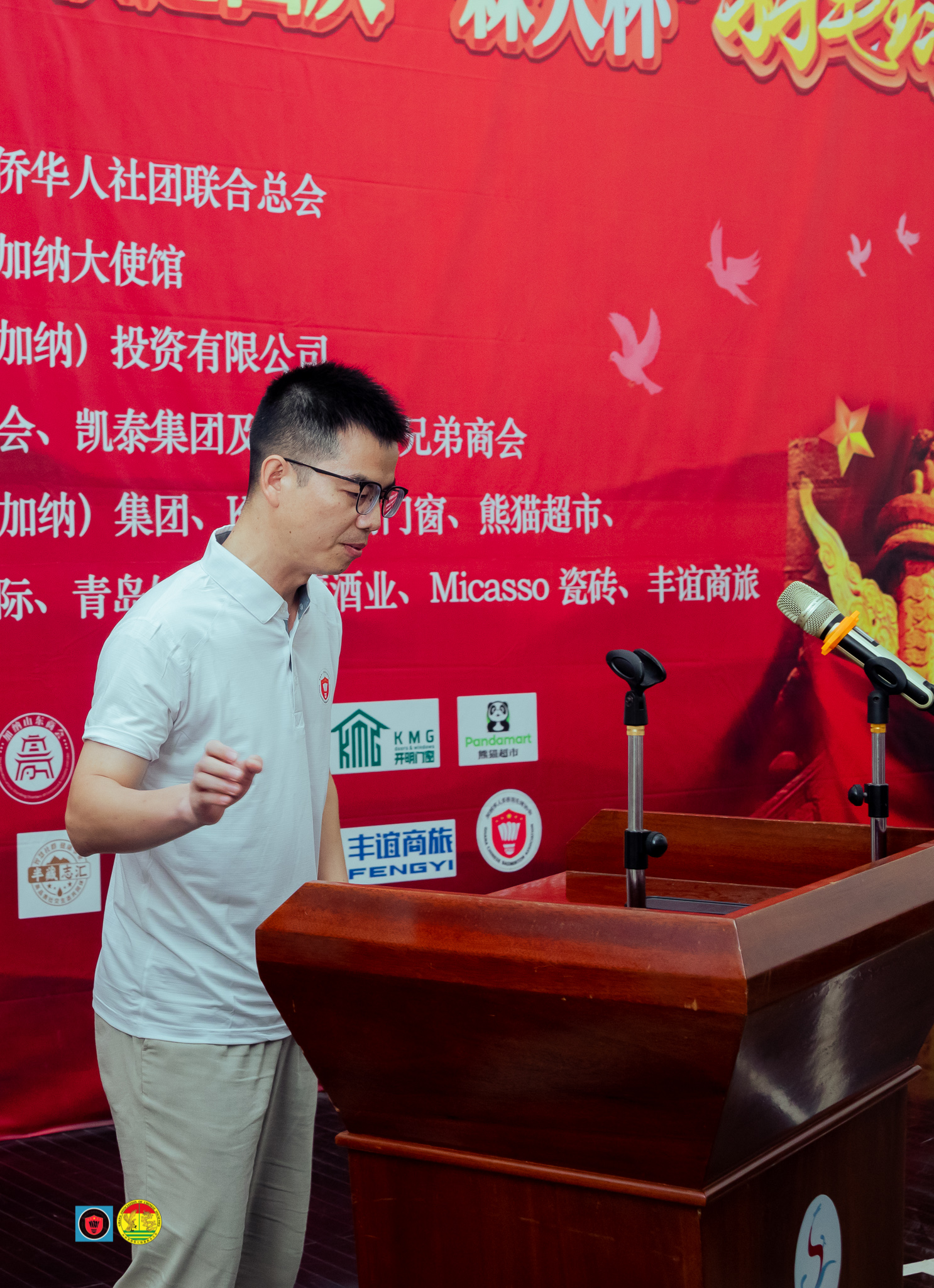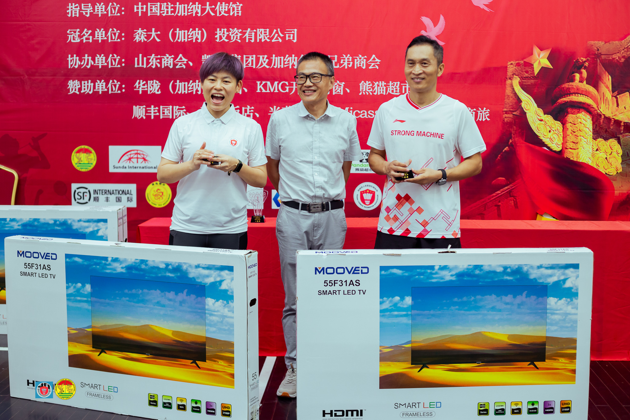 本次羽毛球联谊赛冠名单位森大(加纳)投资有限公司总经理叶炜表示,虽然和祖国远隔万里,但在加纳华侨华人社团联合总会、侨商企业以及有关侨团商会共同努力下,旅加华侨华人羽毛球爱好者得以在中秋国庆双节临近之际欢聚一堂,乐享羽毛球运动带给我们的健康和乐趣,充分感受祖国一家亲的美好氛围,意义非凡。叶总并鼓励大家赛出友谊和风格。