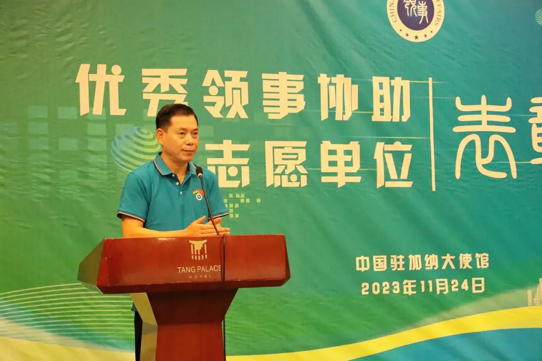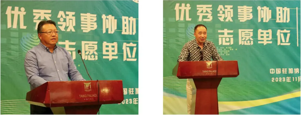 卢大使向获得表彰的9家单位即加纳华侨华人社团联合总会、加纳福建华人华侨工商联合总会、加纳中加贸易商会、加纳粤港澳大湾区商会、加纳广西同乡会、加纳山东商会、加纳华人资讯、加纳食中天饭店和中国(广东)第12批援加纳医疗队表示热烈祝贺。卢大使对志愿单位,特别是主要侨团商会给予使馆的大力支持和协助表示衷心感谢,对协助处理西部省沙马地区采石场爆炸案善后慷慨捐赠的先进个人和单位表示高度赞赏。卢大使要求领事志愿者认真学习《中华人民共和国领事保护与协助条例》,进一步协助使馆做好领事保护与协助工作。卢大使介绍了今年领保工作总体情况,通报近期发生的3起中国公民和企业被武装抢劫案件,强调广大旅加中国公民要对加纳治安状况保持高度警惕,积极防范安全风险。