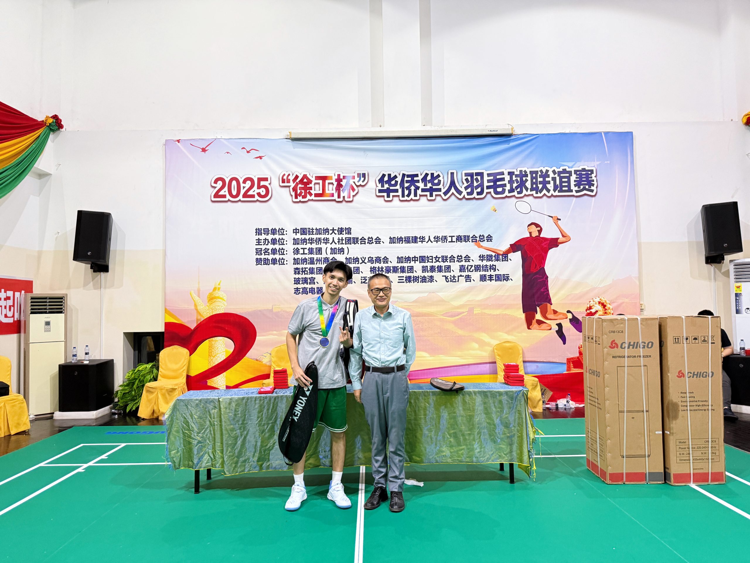 竞技运动的魅力,不仅在于巅峰对决,更在于薪火相传。本届赛事的“最具潜力奖”,正是对传承最好的致敬。这不仅是一个奖项,更是一份期许,一个关于未来的承诺。当使馆代表宁军主任、王洁君、华陇集团代表陈小明、康健、援加医疗队联队江华堂、唐海云接过“最具潜力奖”的奖牌,我们仿佛看到了加纳侨界羽毛球运动领军人物的雏形。